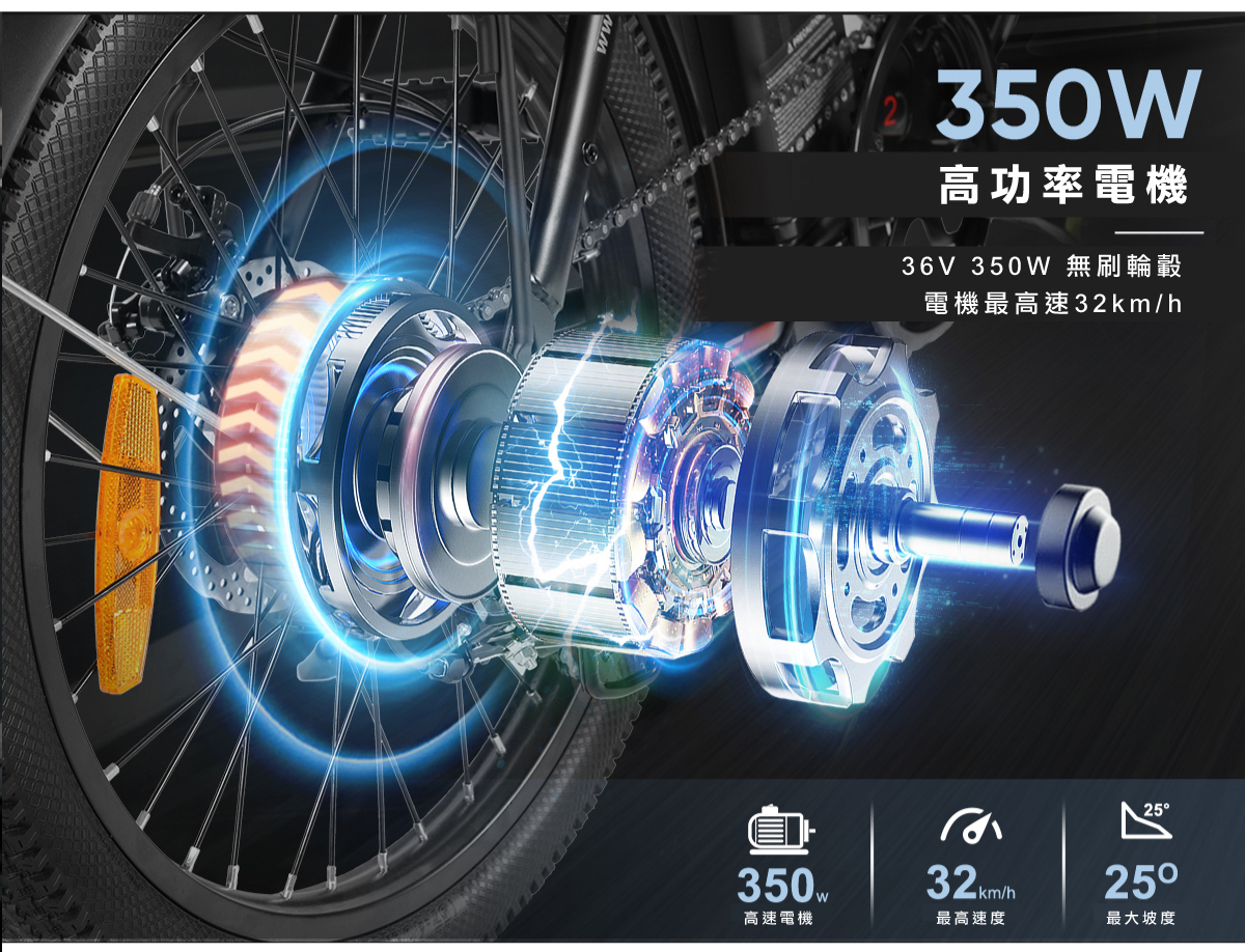 • 電機:36V 350W 高速無刷靜音電機