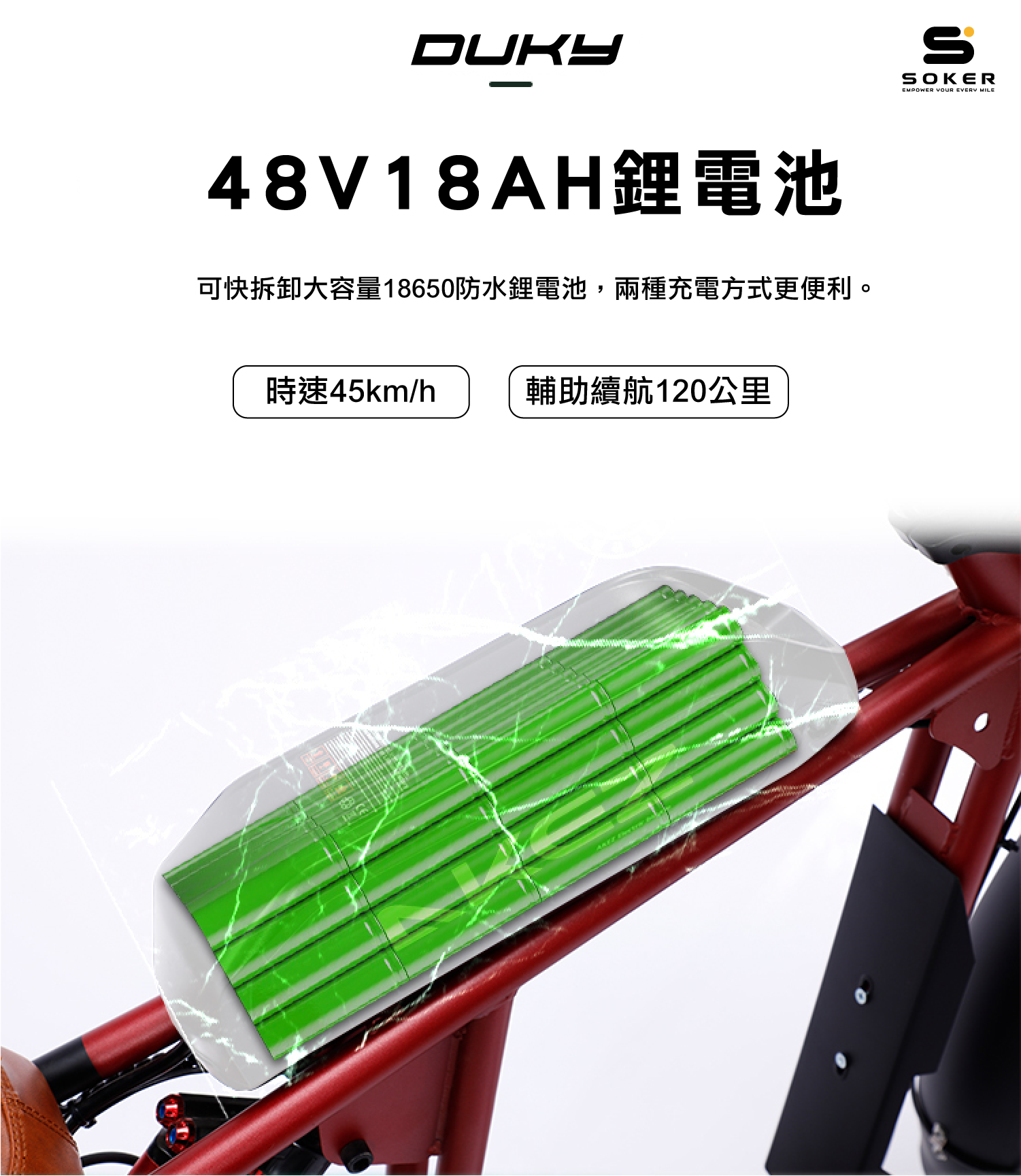 續航高達120公里,電池快拆功能,隨時輕鬆充電,無須擔心續航問題。