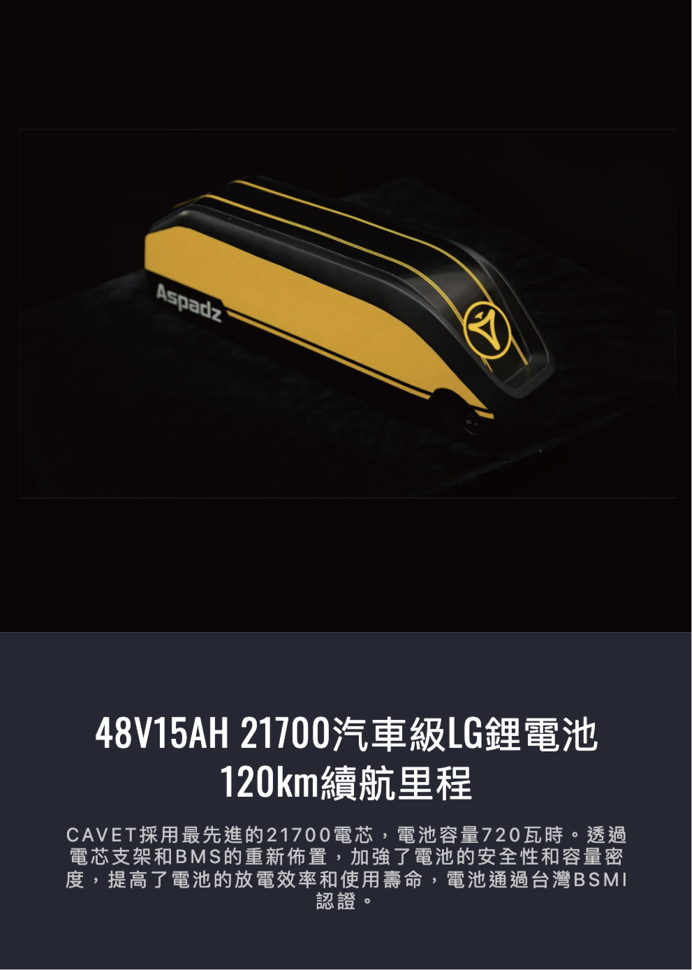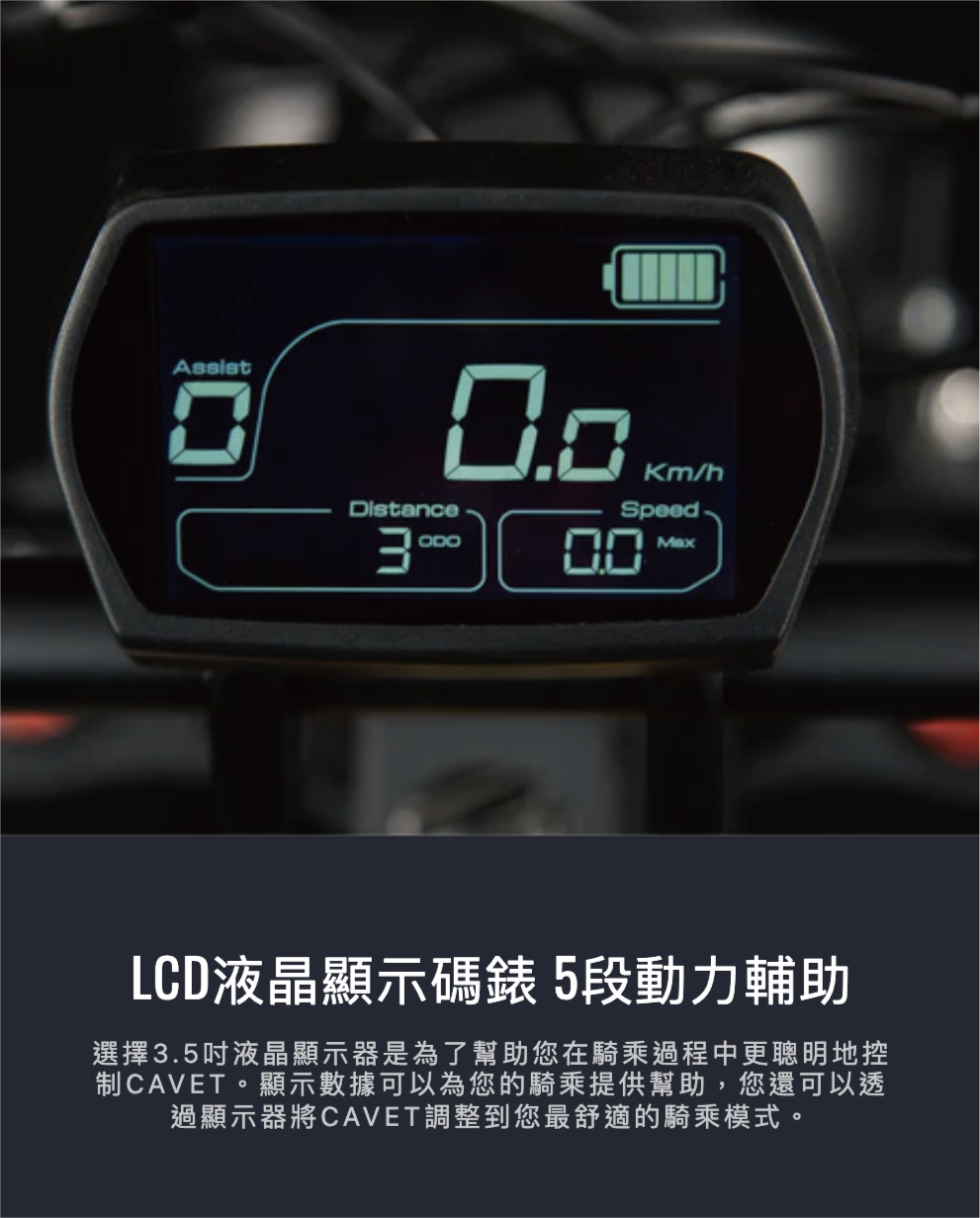 這款電動自行車採用業界最高容量電池和強大電機,具有超長續航和高效能量轉換效率。無論是上坡路段還是複雜地形,都能輕鬆應對。市區通行,鄉村騎行,Cavet都將是你的不二之選。