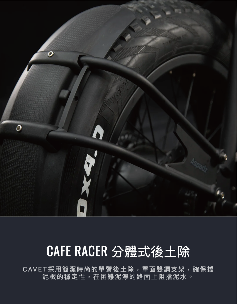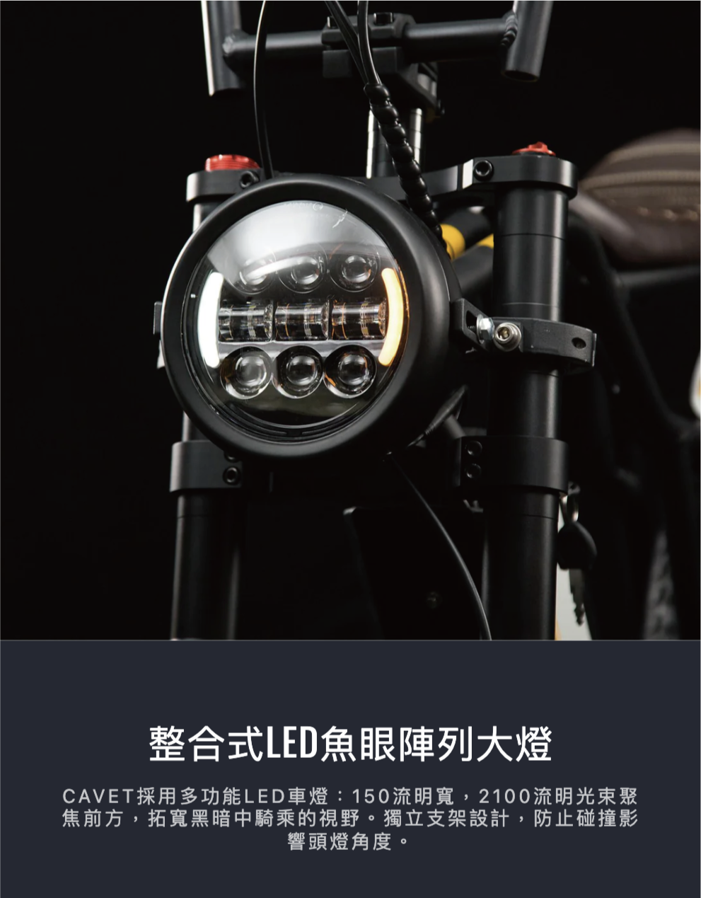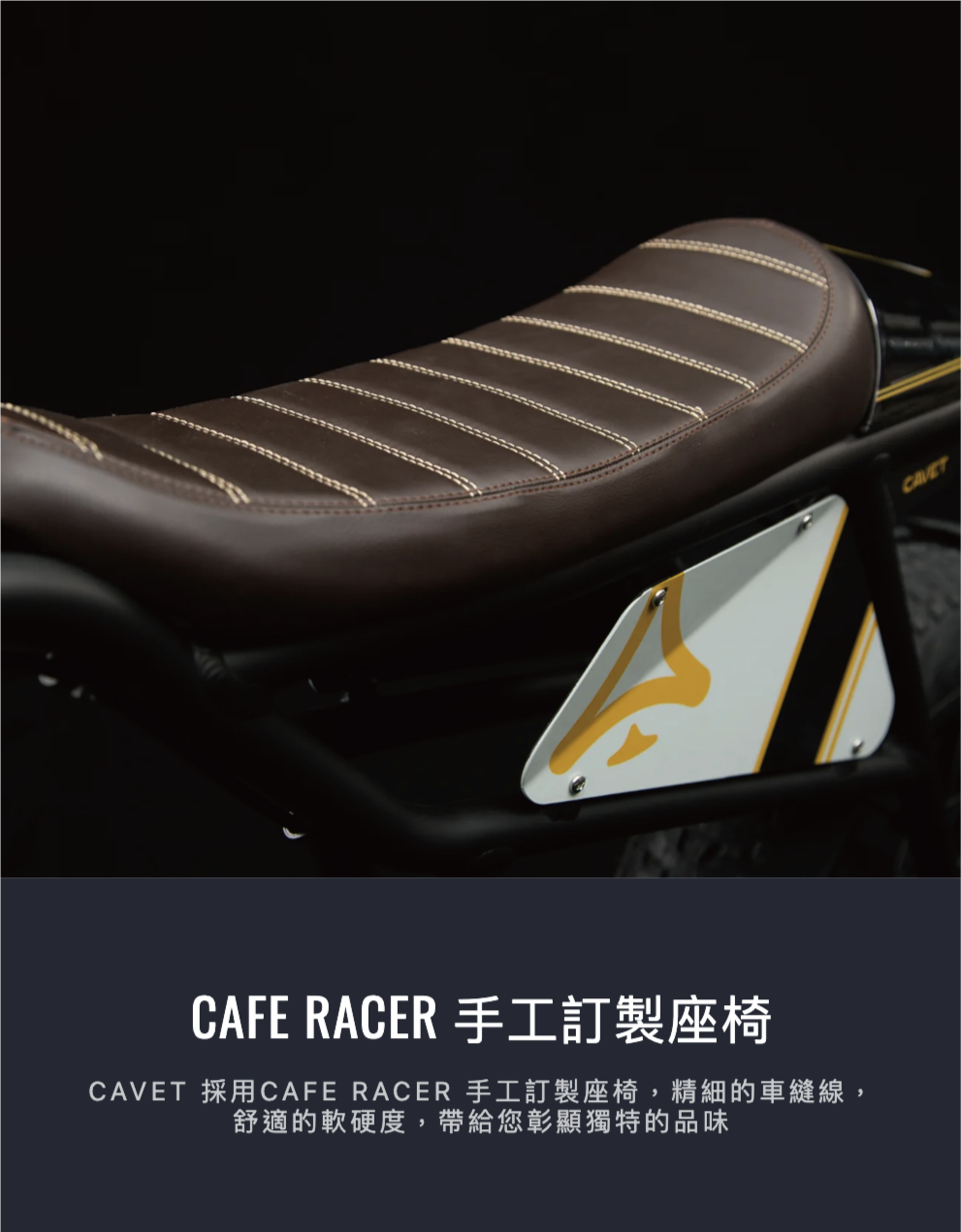 作為一款復古自行車,Cavet融入了Cafe Racer的設計元素,堪稱復古與現代的完美結合。其獨特的車身設計